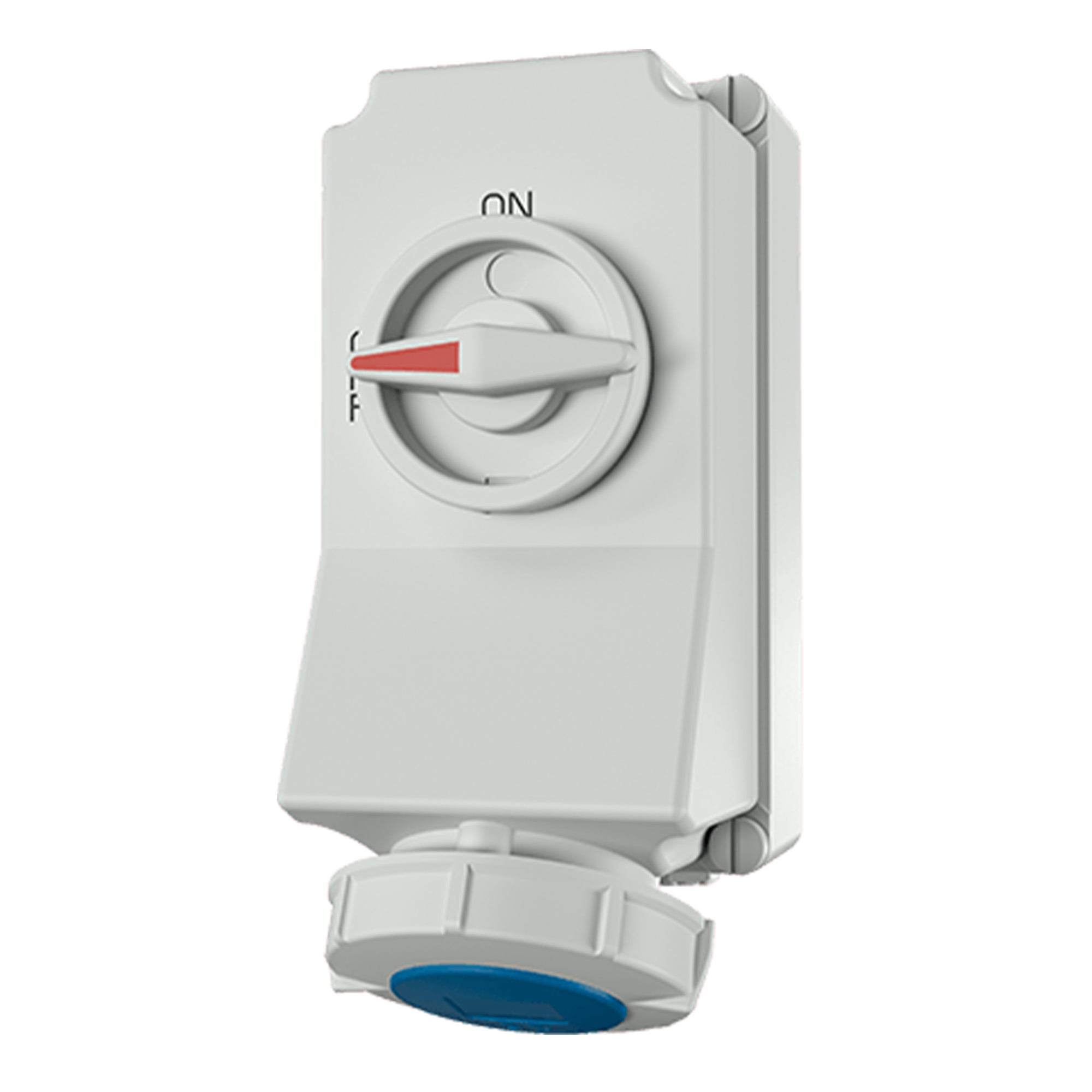 TOMA INDUSTRIAL C/BLOQUEO MECANICO DUO 32A 3P+T 230V 50-60HZ 9H IP67 AZUL NO INC CANDADO
